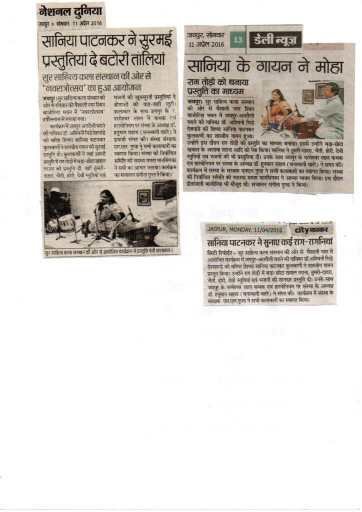 देश विदेश में सानिया जी कई सफल प्रस्तुतियाँ दे चुकी हैं आपको अनेक संस्थाओ द्वारा सम्मानित भी किया जा चुका है।