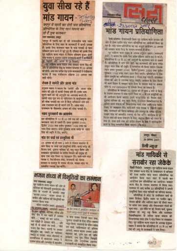 कार्यक्रम में बीकानेर के श्री अली मोहम्मद  (संगीत निर्देशक मुम्बई) ने सरस्वती वन्दना मेरे कन्ठ बसो महारानी से कार्यक्रम की शुरुआत की, इसके पश्चात केसरिया बालम, आज तो नेणा रा लोभी आसी ए म्हारि सजनी ए, धिमो मदरो चाल, म्हारा साजनिया रे म्हारा लस्करिया ओल्युडि सतावे, म्हारा हन्जला मारू रेह्जाओ रातड़ली आदी अनेक अप्रचलित माड गाई व शब्दो का अर्थ बताते हुये समा बान्ध दिया।