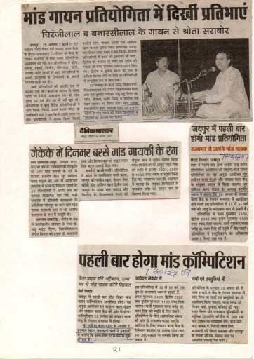 सुर साहित्य कला संस्थान एवं माधव रिलिजियस ट्रस्ट की ओर से रविवार 25 जुलाई 2021 शाम 6:30 बजे माधव आश्रम भवन में  डॉ. गरिमा कुमावत द्वारा लिखित पुस्तक  “पं. चिरंजी लाल तंवर -स्वर रा मोती” का विमोचन किया गया। पुस्तक का विमोचन गुरूजी पं महेश दत्त शर्मा (रामायणी), डॉ अमला बत्रा, संस्था संरक्षक श्री एम एल गुप्ता, हाजी इक़बाल खान साहब, गुरु पं हनुमान सहाय जी ने किया।