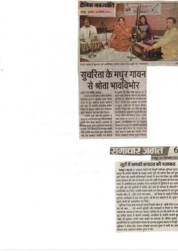 -: कार्यक्रम :- बुधवार, 23 सितम्बर 2015 | विदुषी सुचरिता गुप्ता : गाय – संगत कलाकार | श्री ललित मिश्रा (बनारस) : तबला